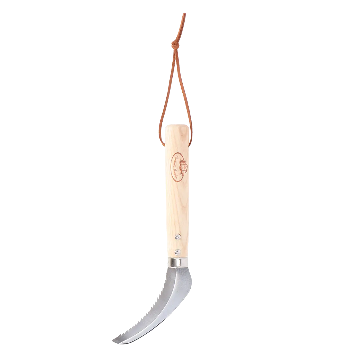 Šis piktžolių šalinimo įrankis pagamintas iš uosio medžio ir nerūdijančio plieno. Aštrus peilis su dantukais leidžia lengvai nupjauti šaknis.