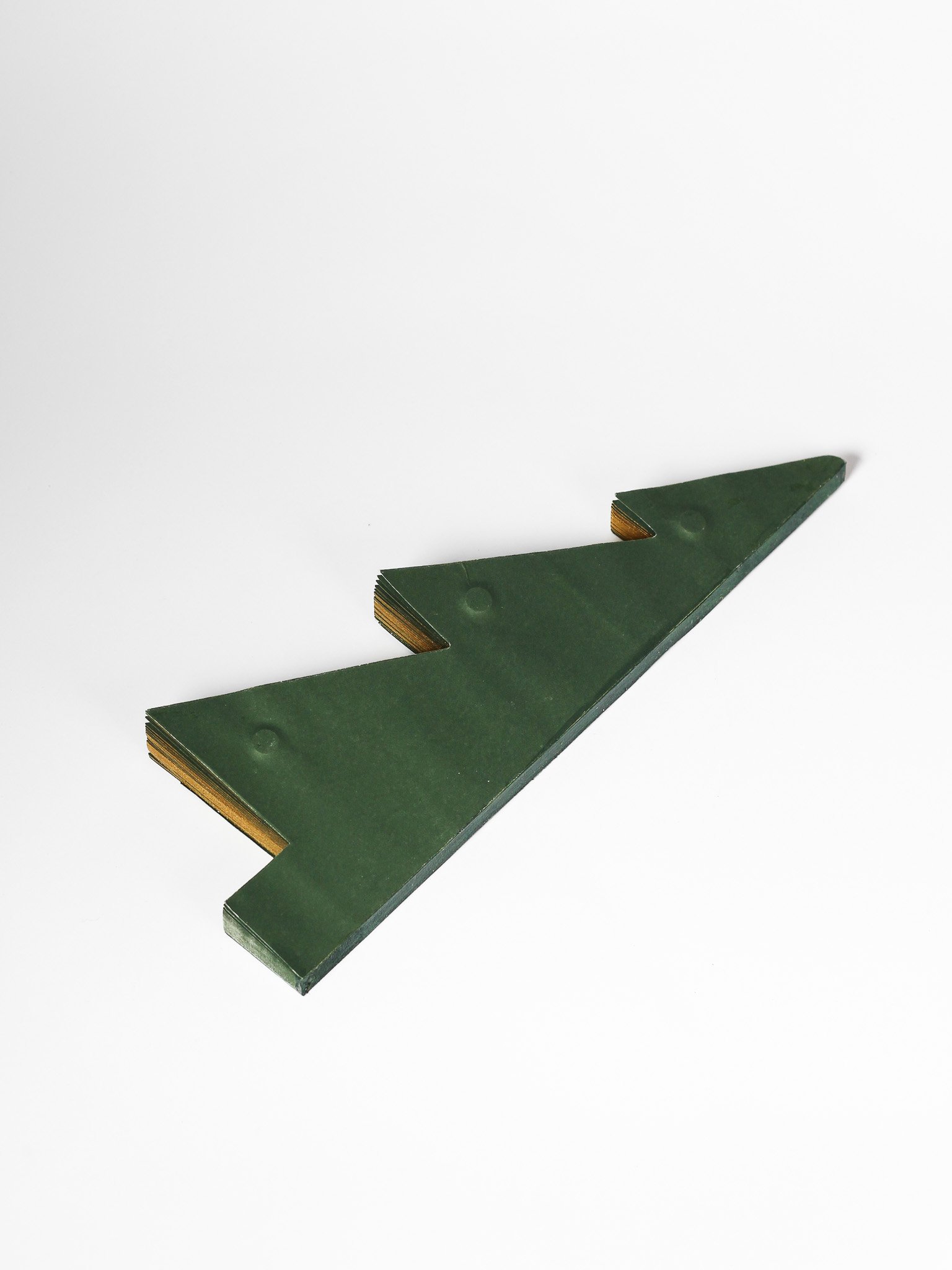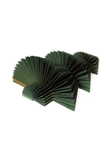 Eglutė lengvai išskleidžiama ir sulankstoma, todėl patogu ją laikyti ar perkelti. Gili žalia spalva ir subtilus auksinis kraštelis suteikia šventiškumo bei elegancijos. Puikiai tinka namų, biuro ar vitrinų papuošimui, taip pat – dovanų idėjoms.