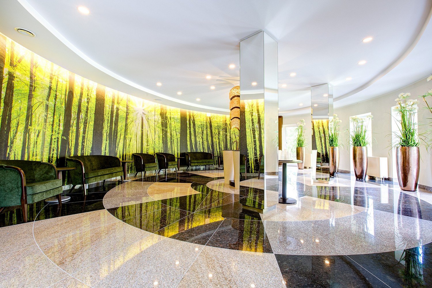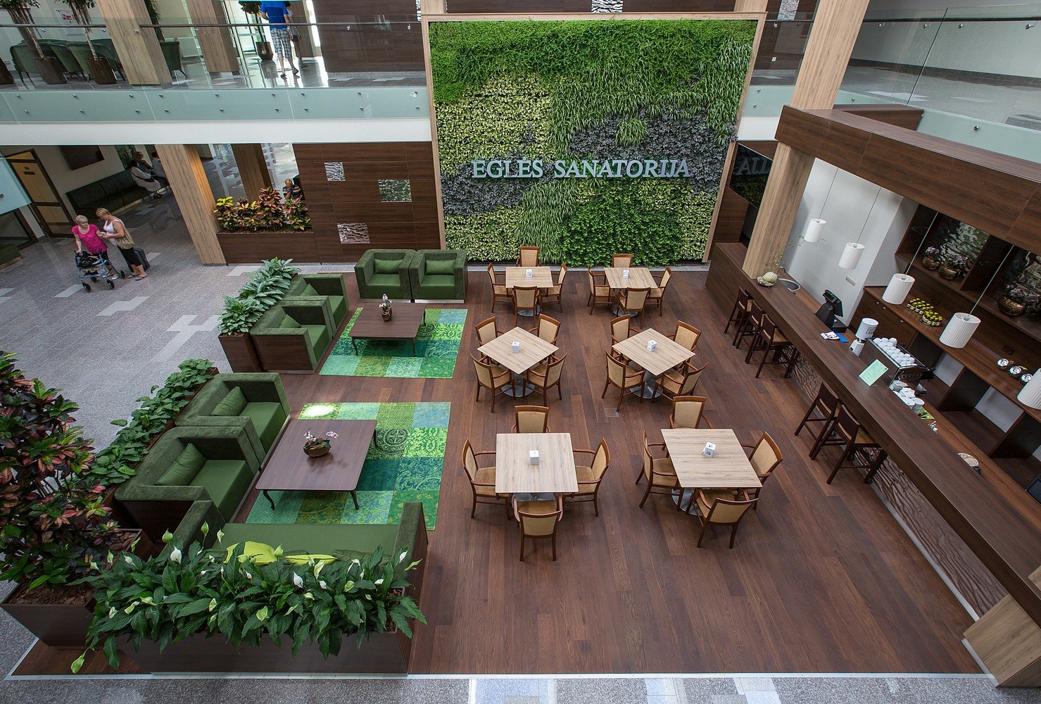 Įrengta viena didžiausių Lietuvoje visus metus žalia siena. Bendras plotas virš 30 kv m. Modulinė Biotecture technologiija, integruota automatinė tręšimo bei laistymo sistema.