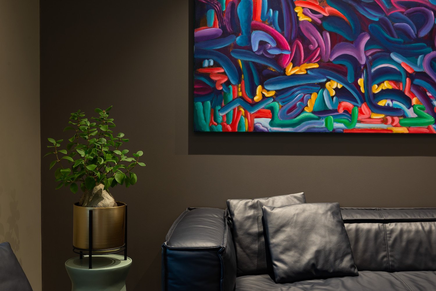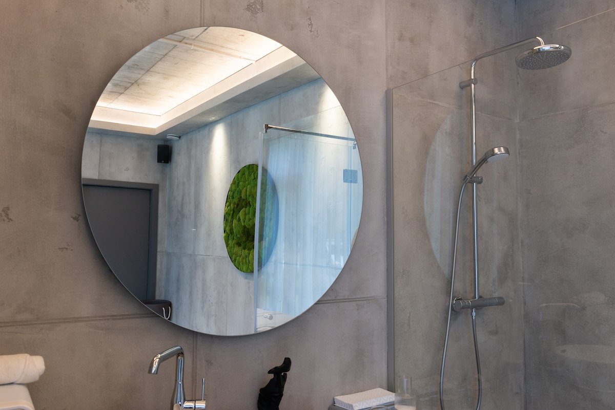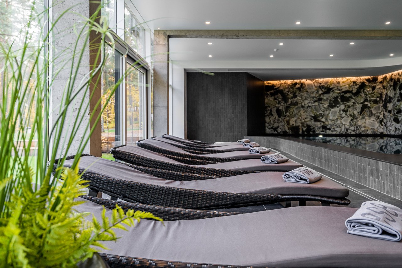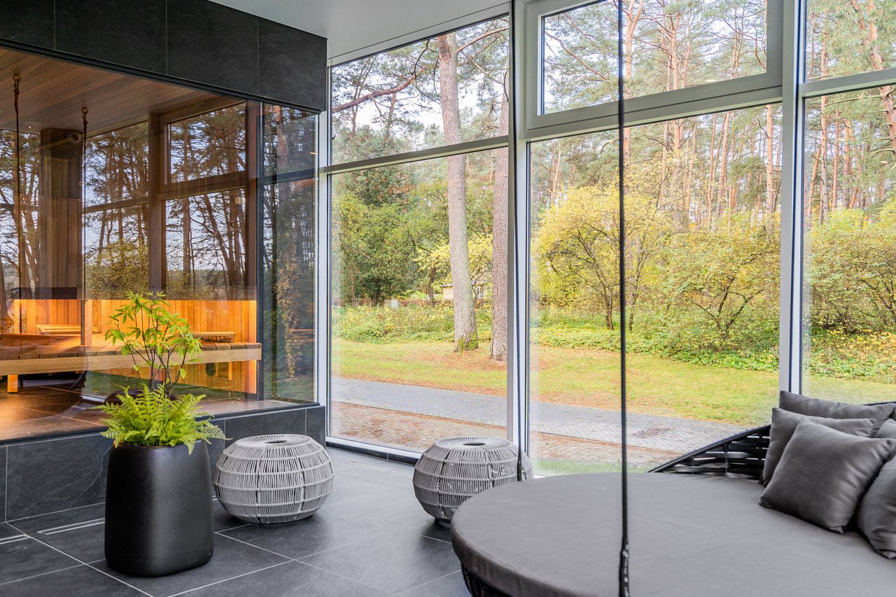 Baseino, SPA ir sveikatingumo centro erdves dekoravome itin aukštos kokybės dirbtiniais augalais, kurie atliepia miško augmeniją. Masažo kambaryje sukūrėme sąmanų paveikslą įkomponuotą į „rustic” stiliaus industrinį metalo rėmą.