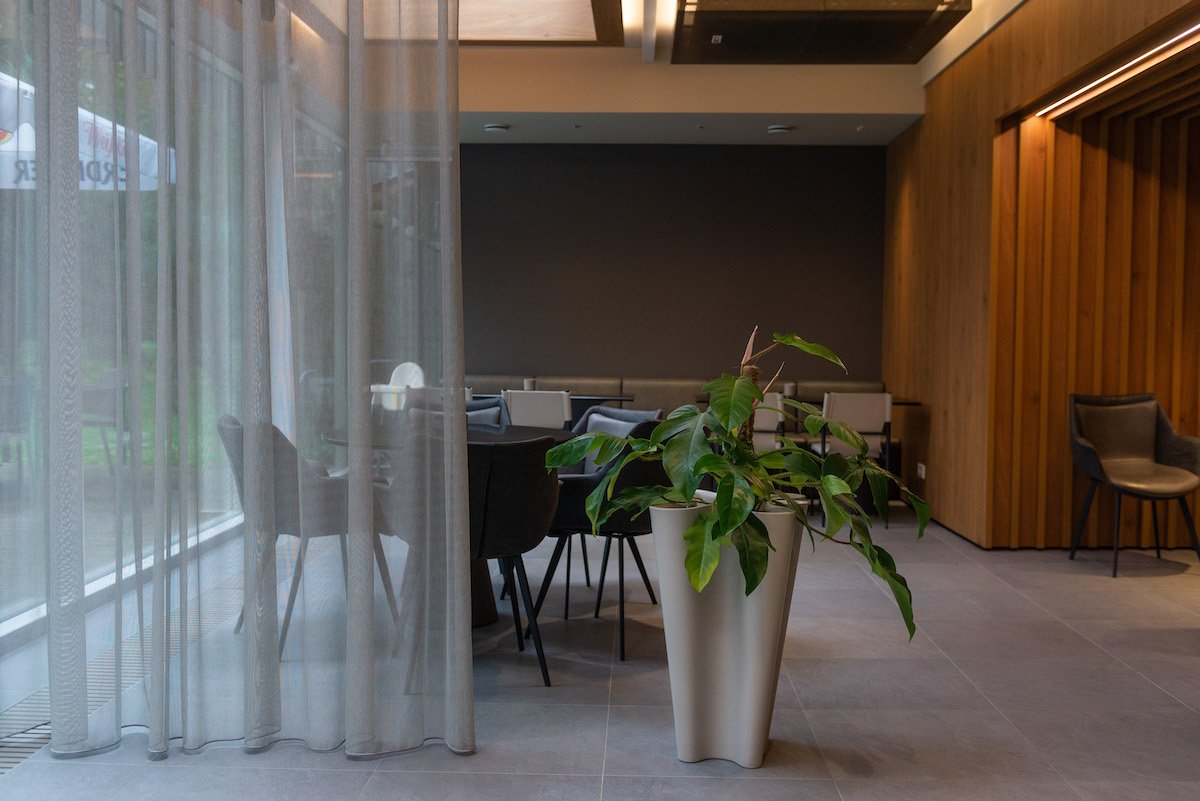 Šio viešbučio dekoro augalais tikslas buvo apjungti pasirinktą modernią skandinavišką interjero stilistiką su natūralios gamtos landšaftu pastato prieigose. Viešbutis įkurtas spygliuočių parko apsuptyje, o jo svečius nuo gydančios Birštono gamtos tarsi teskiria tik stiklo sienos.
