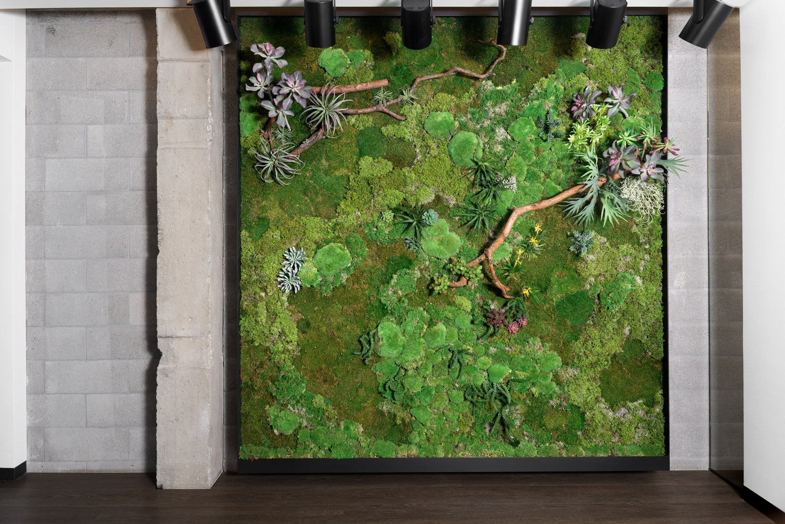 Minkštos samanų struktūros sugeria garsą, pagerina akustinį komfortą ir sumažina aido efektą erdvėje.